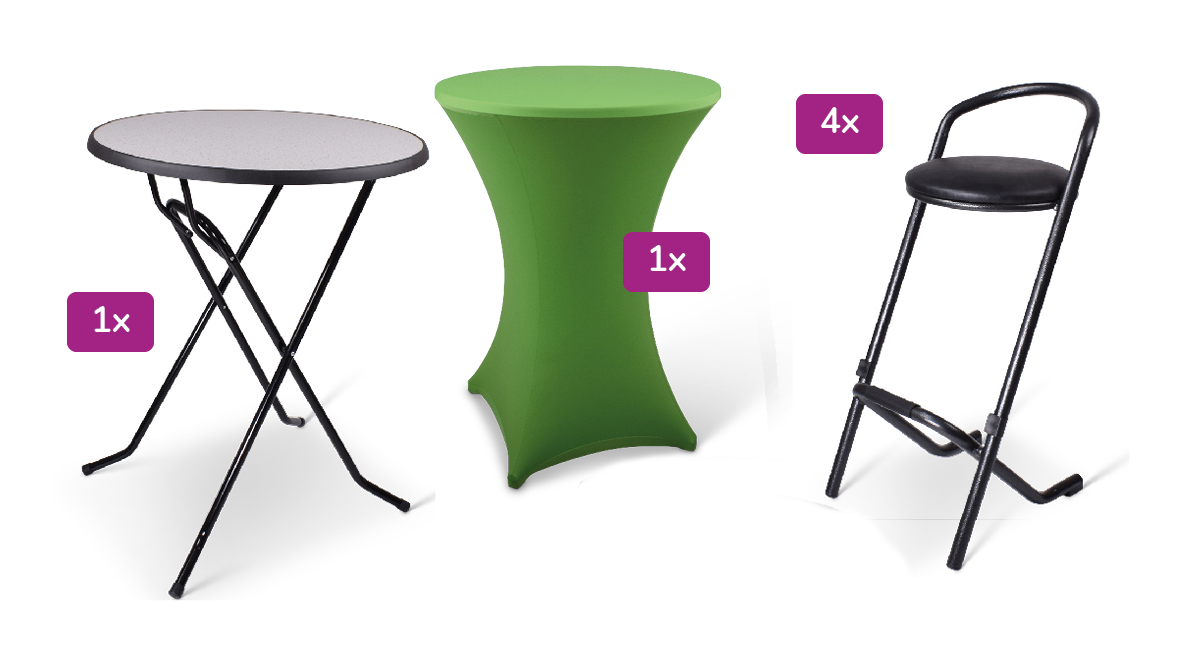 Met dit zeer uitgebreide pakket bent u in één keer klaar, bevat al het onderstaande: – 1x Colorado Statafel – 1x Stretchrok + Topcover in kleur naar keuze – 4x Barkruk Angara (een geweldige en stapelbare barkruk)